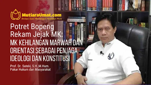MutiaraUmat.com -- Para pegiat demokrasi dan HAM di negeri ini kini telah menggaungkan narasi bubarkan Mahkamah Konstitusi. Mengapa? Mereka melihat MK bukan lagi sebagai penjaga konstitusi (constitution guardian)--alih-alih penjaga ideologi--tetapi telah berubah menjadi penjaga rezim dan oligarkinya, bahkan akronim MK telah diplesetkan dengan istilah Mahkamah Kalkulator (terkait Pemilu) dan Mahkamah Keluarga (terkait dengan syarat pencapresan). Banyak putusan MK yang dinilai merusak marwah dan orientasinya sebagai the guardian of constitution dan sekaligus ideologi yang sarat dengan tuntutan sebagai lembaga yang melampaui teks, saya memakai istilah 'dewanya' hukum. Putusan-putusan MK tersebut antara lain terkait dengan JR Perppu Ormas, PHPU 2019, JR UU Omnibus Law Ciptaker, JR UU Pemilu terkait dengan PT 20%, dan terakhir JR UU Pemilu terkait dengan syarat capres.